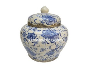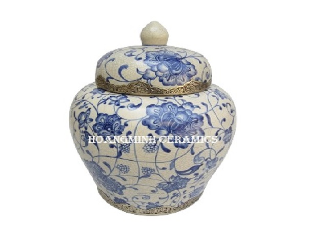 Chóe sứ vẽ hoa coban chạm đồng