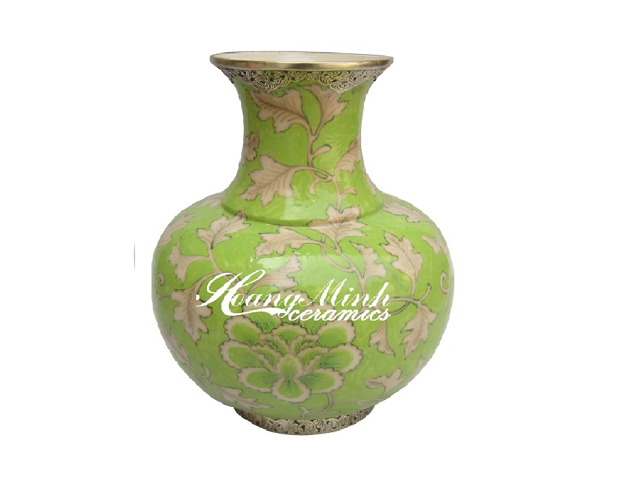 Lọ tỏi sứ phù dung xanh chạm đồng
